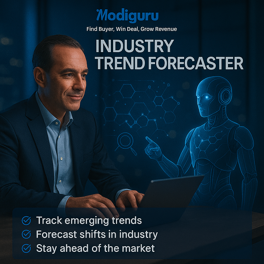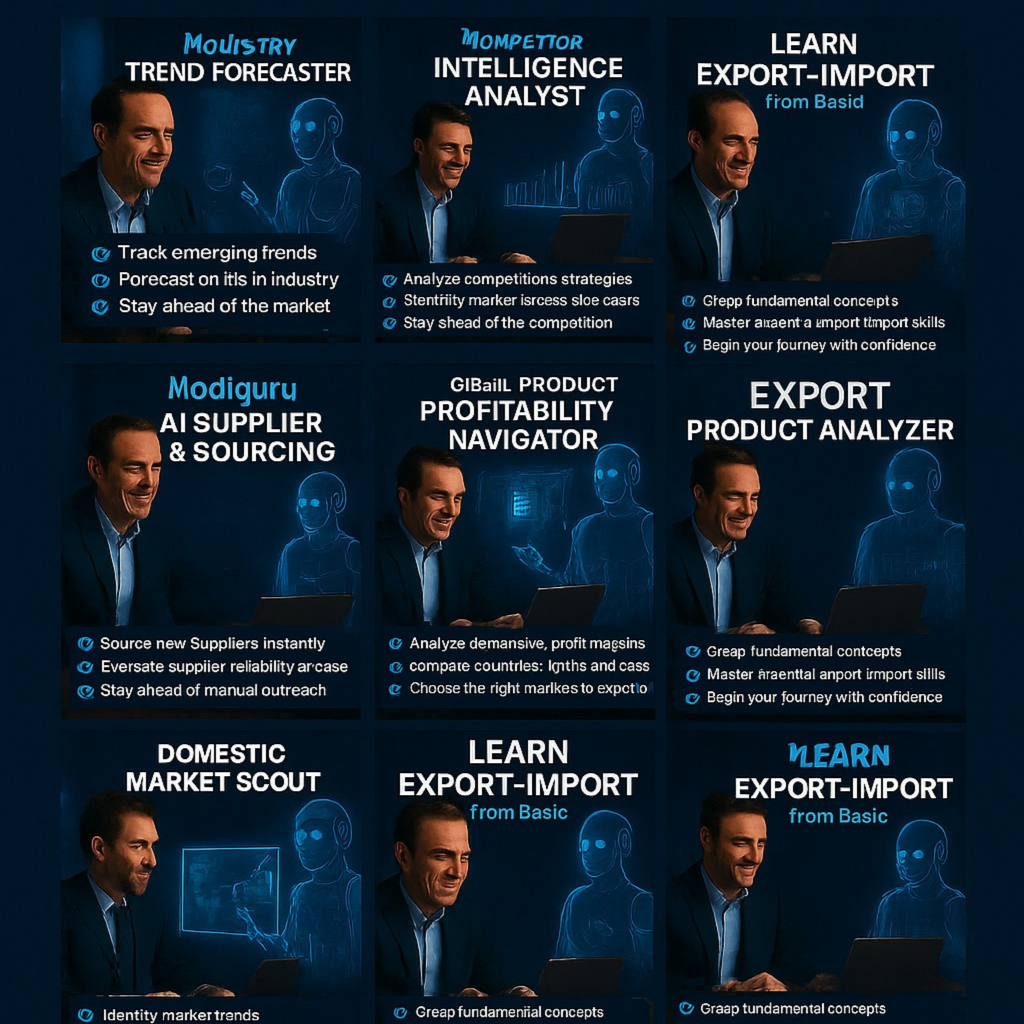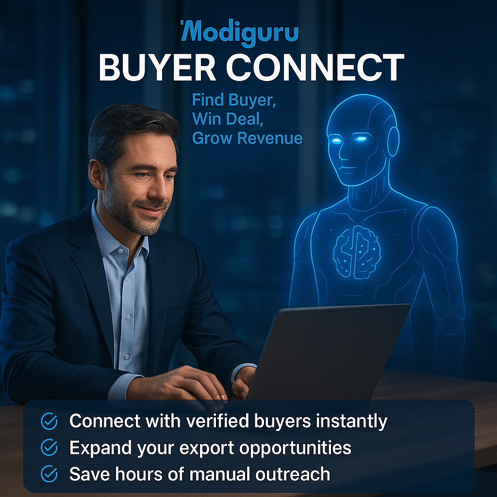 AI that works on your behalf—find buyers, win deals & grow revenue in seconds.: Turn hours of Business work into seconds with Modiguru AI Your 24×7 AI Team for B2B & Exports—Now in a single bundle!"...